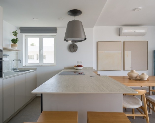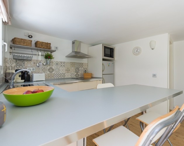 The living room / kitchen and balcony that covers the entire front of the house are integrated as one more space of the living room. Very pleasant for any occasion: sunbathing, breakfast, coffee or enjoy a romantic dinner with friends or family.